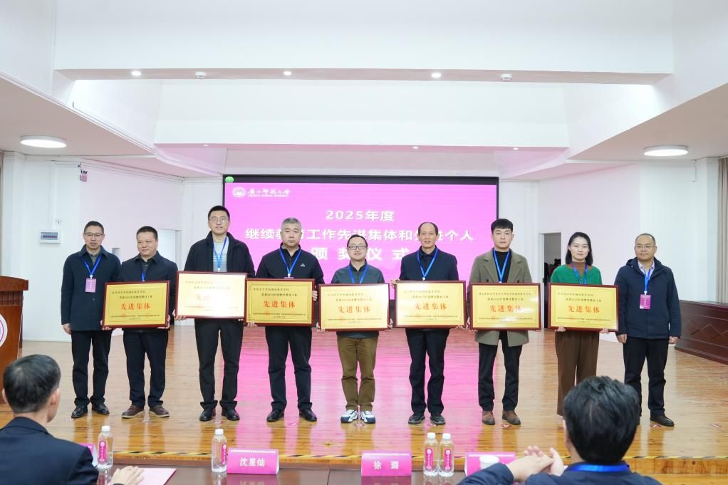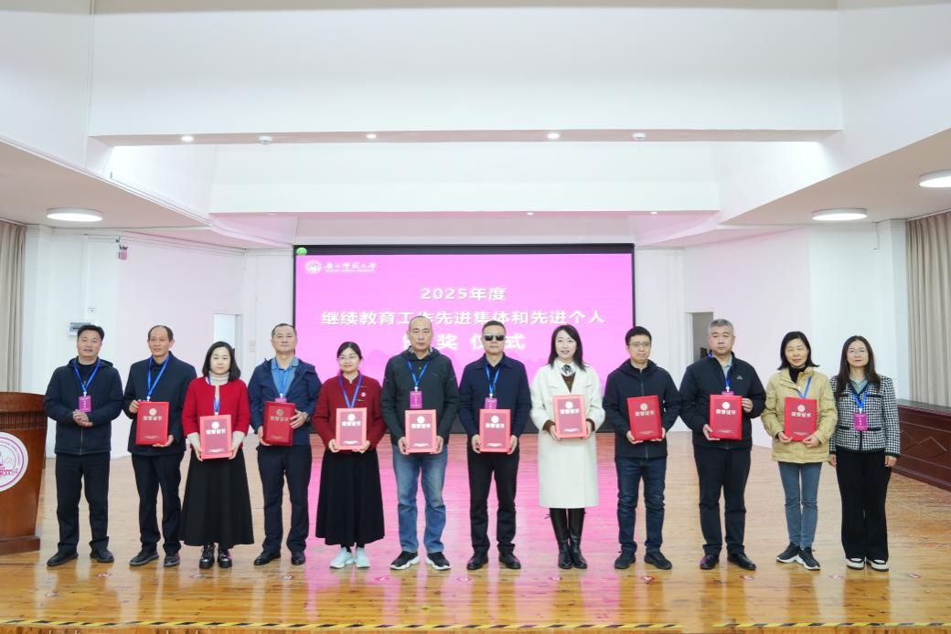 会议还进行了2025年度继续教育工作先进集体和先进个人颁奖仪式,对在继续教育领域做出突出贡献的单位和个人予以表彰。我校继续教育学院凭借在数字化转型与创新发展方面的突出表现斩获“先进集体”荣誉称号,学院祝莉、成必成两位老师荣获“先进个人”称号,学校校外教学点——乐山市欣欣艺术职业高中也荣获“先进集体(校外教学点)”称号。