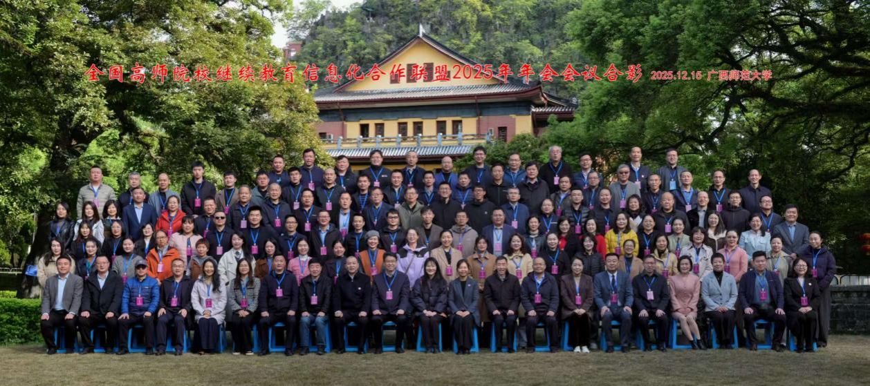 2025年12月14日至17日,全国高师院校继续教育信息化合作联盟2025年年会在广西师范大学隆重举行。教育部职业教育与成人教育司高等继续教育处副处长徐璐,广西师范大学党委常委、副校长沈星灿以及来自哈尔滨师范大学、河南师范大学、四川师范大学、云南师范大学等多所高校和联盟秘书处单位新继教网等逾130位代表齐聚一堂,共商数字化时代继续教育高质量发展大计。我校继续教育学院院长南麒带队参加了此次会议。