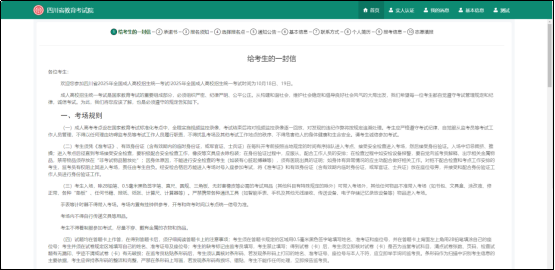 考生在填报信息前需先阅读给考生的一封信,了解本考试的相关考场规则、报考要求等。