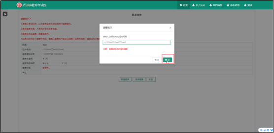 考生核对缴费金额后点击“前往缴费”,输入考生证件号码,待系统弹出支付页面: