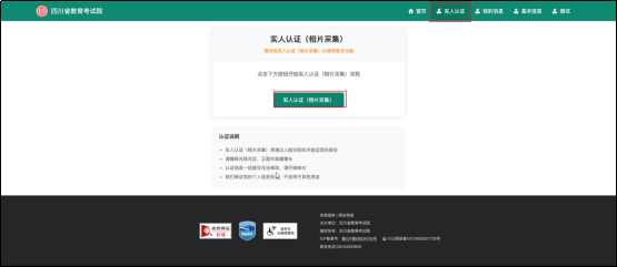 考生首次登录系统,需要进行实人认证,否则无法进行下一步操作。