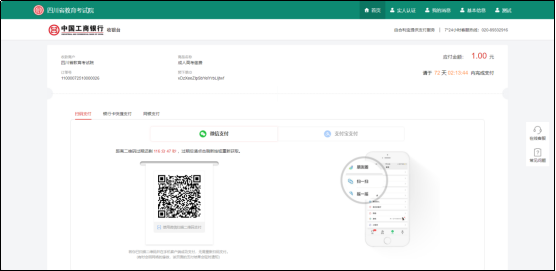核对订单无误后考生可选择合适缴费通道进行缴费。(若无弹出,请检查是否浏览器对弹出式窗口做了拦截)。