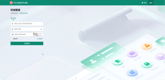考生在登录时,账号可以使用注册的身份证号或手机号,输入密码及图形验证码,完成后点击“立即登录”,即可。