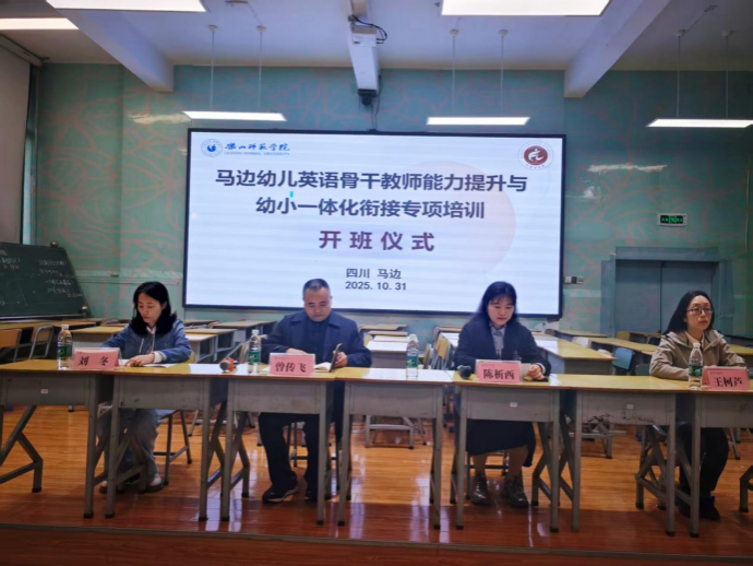 本网讯(文/图 陈析西、王曼雪)受马边彝族自治县教师进修学校邀请,10月31日,外国语学院专家团队赴马边启动“马边幼儿英语骨干教师能力提升与幼小一体化衔接专项培训”并开展第一阶段授课,为当地幼儿英语教育高质量发展注入专业力量。