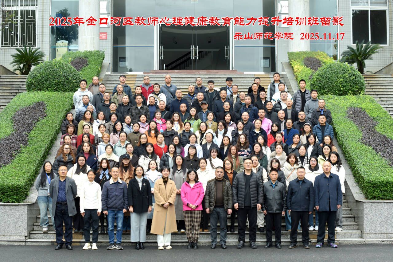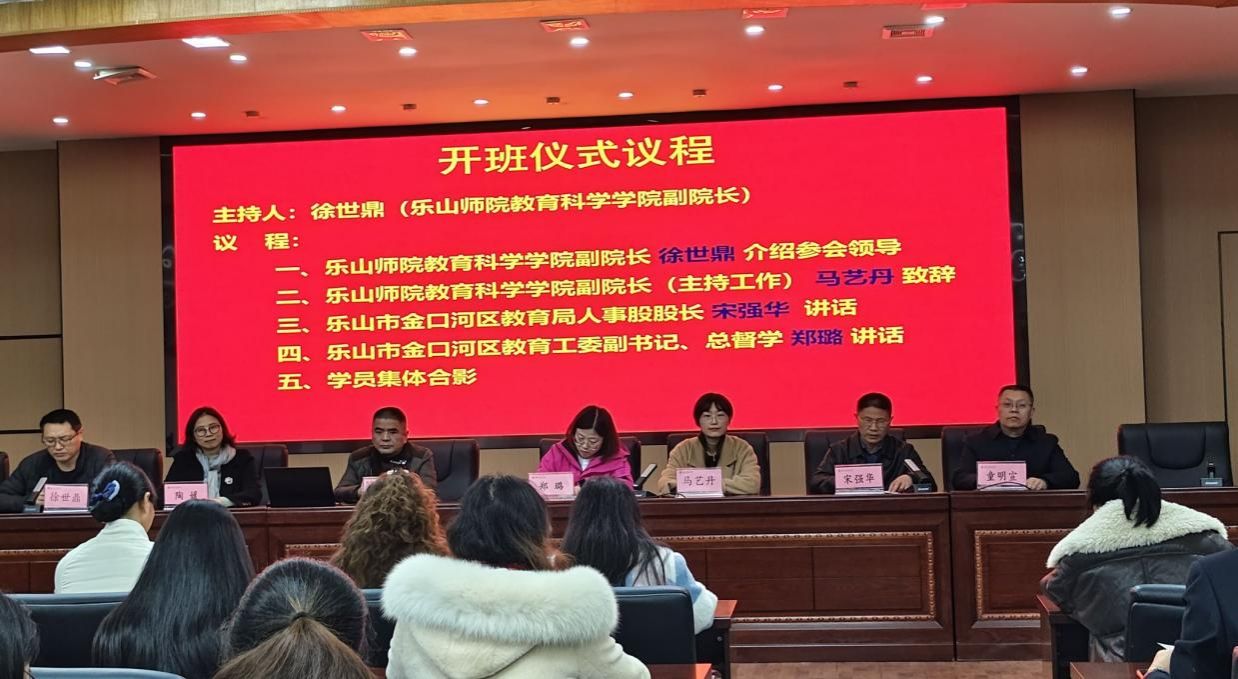 本网讯(图/文、朱玉林)2025年11月17日,由乐山师范学院教育科学学院承办的“2025年金口河区教师心理健康教育能力提升培训”开班仪式在弘毅楼中干会议室701顺利举行。乐山师范学院教育科学学院党委书记罗立顺、党委学生工作部副部长陶媛、教育科学学院院长马艺丹、教育科学学院副院长徐世鼎,乐山市金口河区教育工委副书记郑璐、金口河区教育局人事股股长宋强华、人事股副股长童明宣,以及来自金口河区的120余名学员参加了此次开班仪式。开班典礼由乐山师范学院教育科学学院副院长徐世鼎主持。